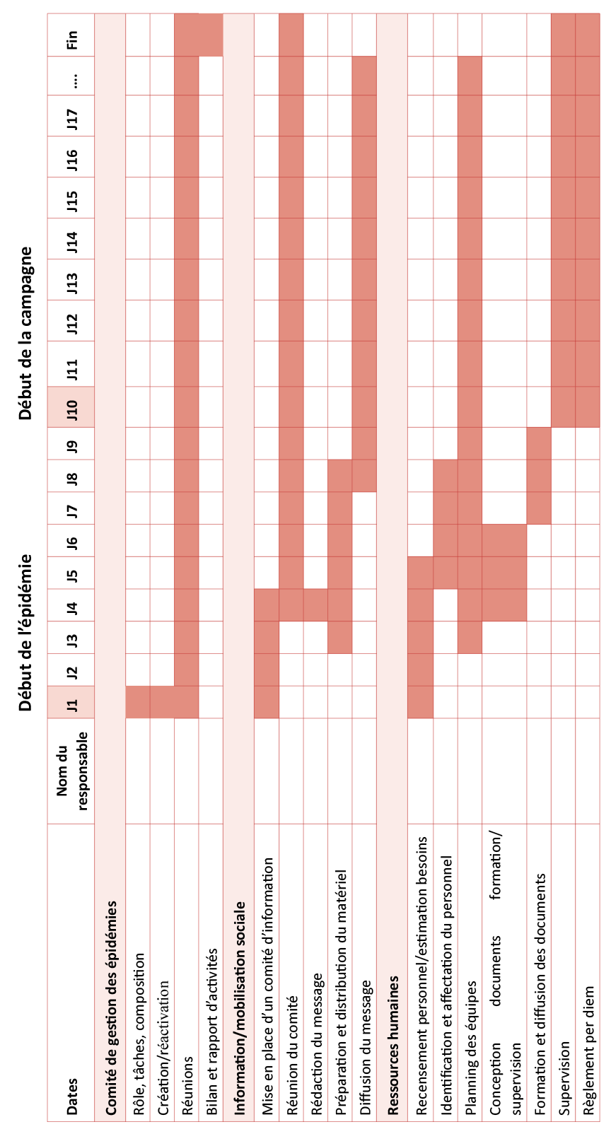 Permalink Descargar Commentaire Return to top Sommaire Télécharger 'Exemple de chronogramme des activités' (document word) Path Liens transversaux de livre pour Appendix 17. Example of vaccination campaign timetable Annexe 16. Nébulisation d’épinéphrine (adrénaline) Annexe 18. Estimation des besoins en vaccins et matériel d’injection