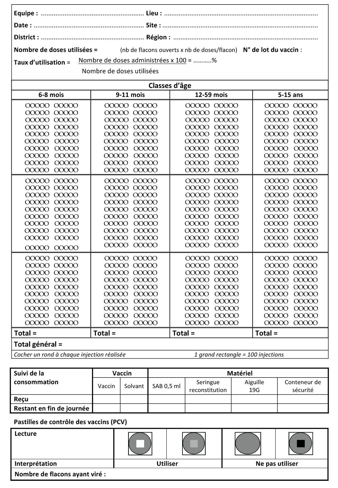 Permalink Descargar Commentaire Return to top Sommaire Télécharger 'Feuille de pointage vaccinations et suivi des vaccins' (document PDF) Path Liens transversaux de livre pour Appendix 26. Tally sheet for vaccinations and vaccine monitoring Annexe 25. Cartes de vaccination rougeole (exemples) Annexe 27. Synthèse des vaccinations rougeole